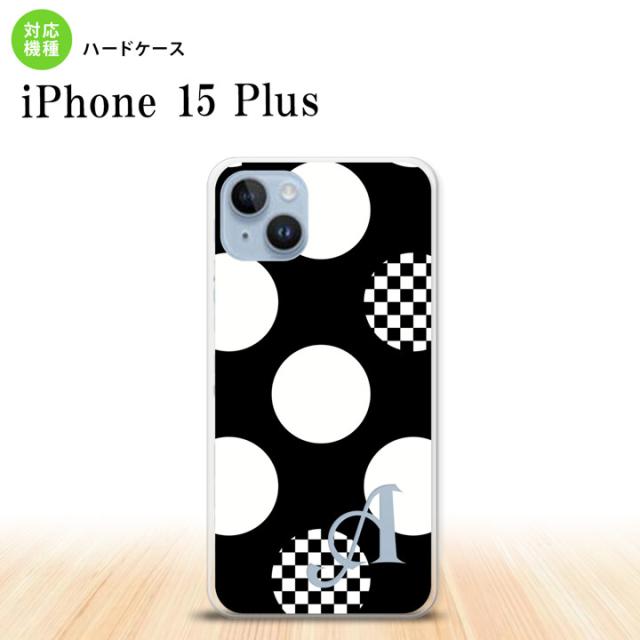iPhone15 plus iPhone15 plus スマホケース 背面ケース ハードケース 水玉 A 黒 白 +アルファベット 2023年 9月発売 nk-i15pl-1111i