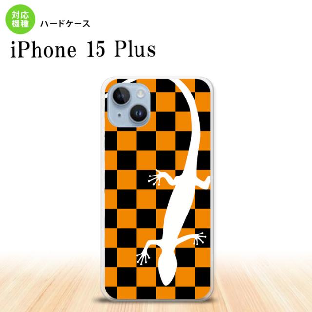 iPhone15 plus iPhone15 plus スマホケース 背面ケース ハードケース トカゲ 市松 オレンジ 2023年 9月発売 nk-i15pl-862