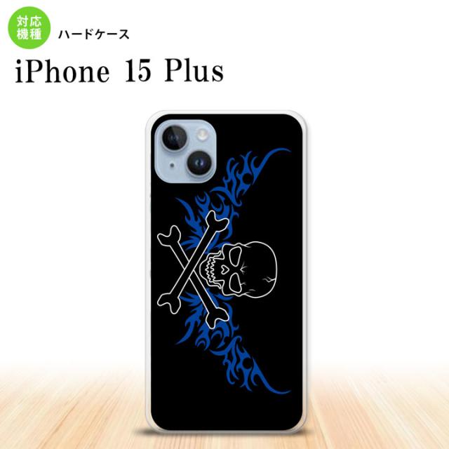 iPhone15 plus iPhone15 plus スマホケース 背面ケース ハードケース ドクロ 黒 横 青 2023年 9月発売 nk-i15pl-875