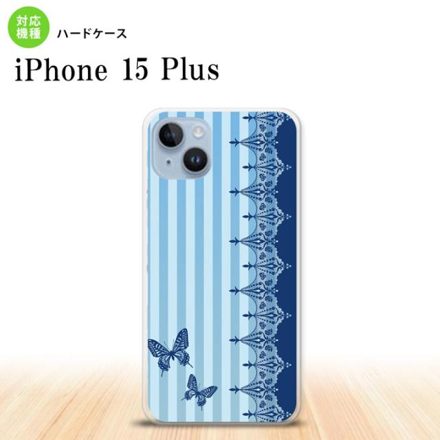 iPhone15 plus iPhone15 plus スマホケース 背面ケース ハードケース バタフライ 蝶 レース 青 2023年 9月発売 nk-i15pl-1283