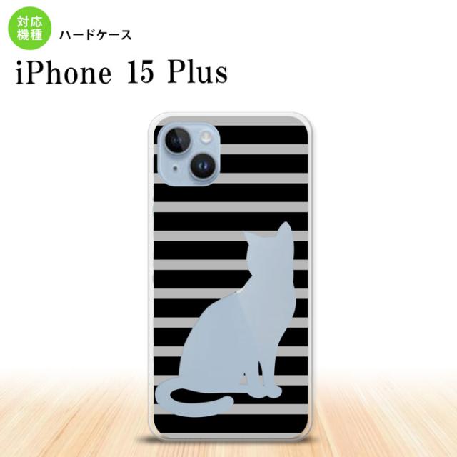 iPhone15 plus iPhone15 plus スマホケース 背面ケース ハードケース 猫 ボーダー A 黒 2023年 9月発売 nk-i15pl-961