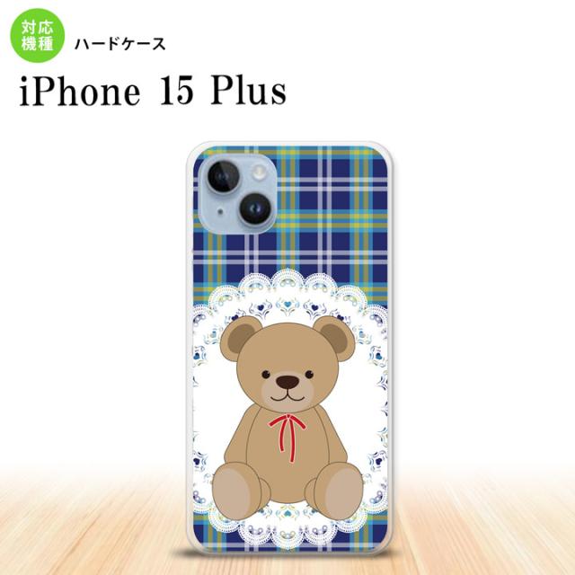 iPhone15 plus iPhone15 plus スマホケース 背面ケース ハードケース くま チェック レース 青 2023年 9月発売 nk-i15pl-758