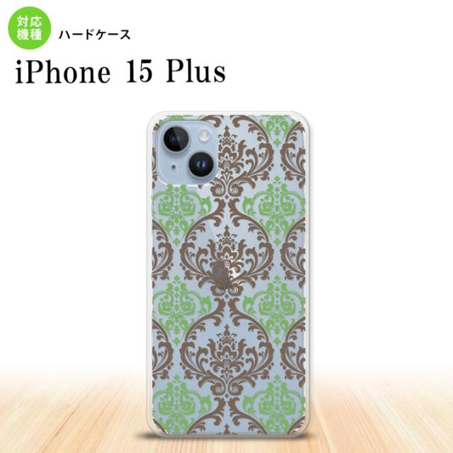 iPhone15 plus iPhone15 plus スマホケース 背面ケース ハードケース ダマスク A クリア 茶 緑 2023年 9月発売 nk-i15pl-459