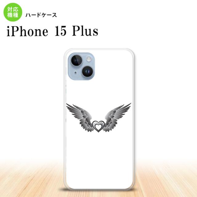 iPhone15 plus iPhone15 plus スマホケース 背面ケース ハードケース 黒翼 ハート 白 グレー 2023年 9月発売 nk-i15pl-470