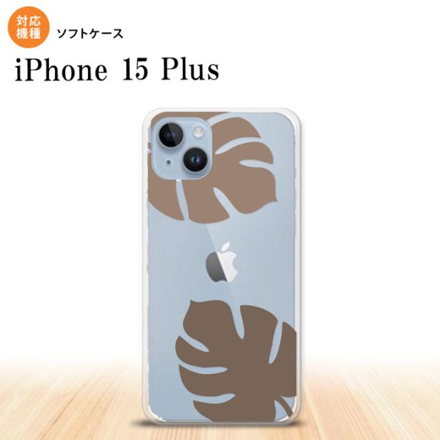 iPhone15 plus iPhone15 plus スマホケース 背面ケースソフトケース モンステラ クリア 茶 2023年 9月発売 nk-i15pl-tp456