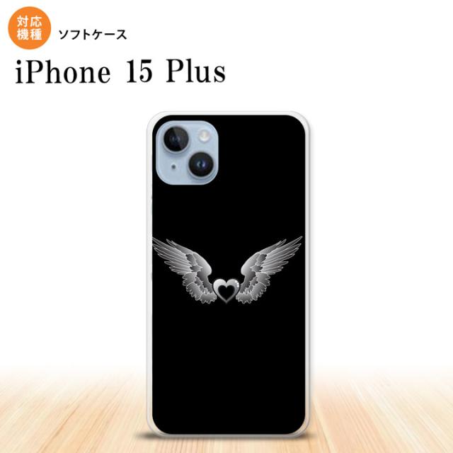 iPhone15 plus iPhone15 plus スマホケース 背面ケースソフトケース 黒翼 ハート 黒 グレー 2023年 9月発売 nk-i15pl-tp468