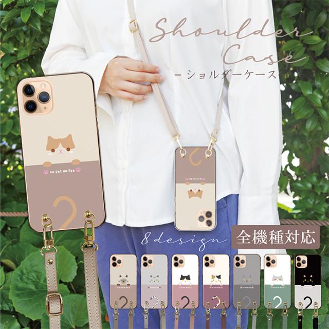 アクオスwish2 ケース ショルダー Aquos wish アクオス センス7 スマホショルダー 首掛け 肩掛け 可愛い 猫 ネコ