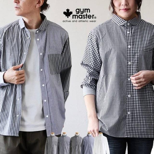 【メール便50】 gym master ジムマスター シャツ 長袖 メンズ レディース 袖リブ クレイジー ギンガム チェック ストライプ 無地 綿100 コットン おしゃれ 大きいサイズ カジュアル 折り返すだけで バンドカラー ショールカラー 2WAY パティ