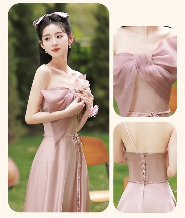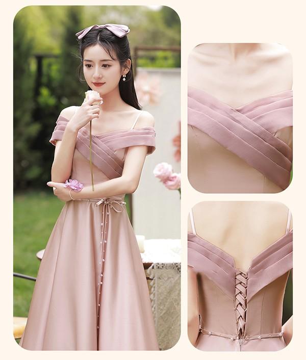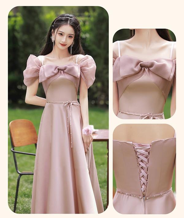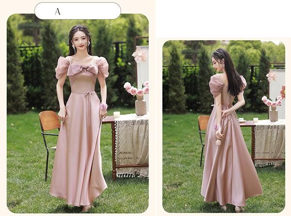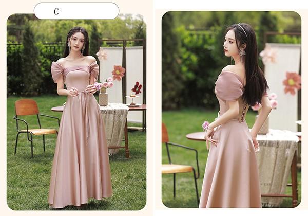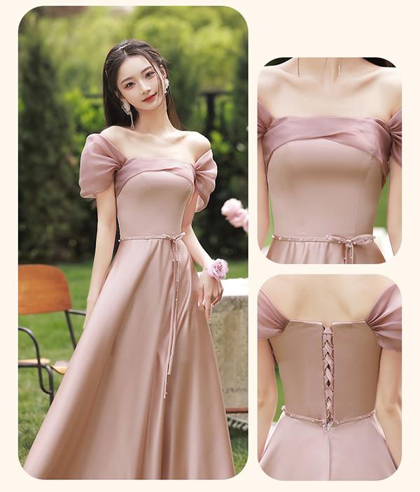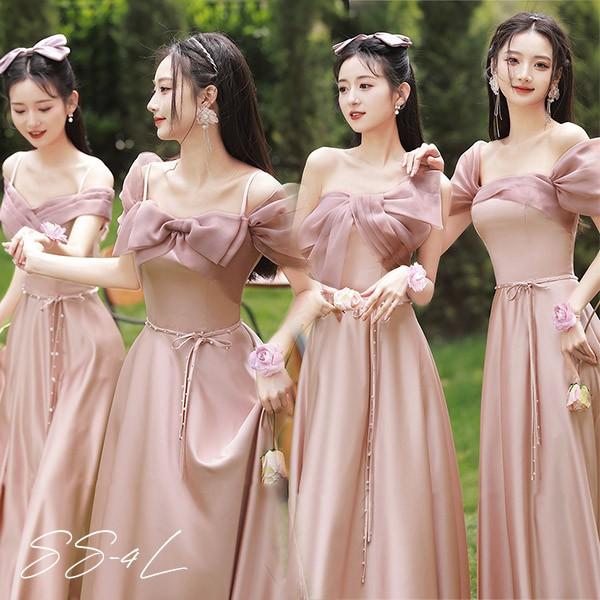 ブライズメイド ドレス ロング丈 ピンク サテンドレス 袖付き 二次会 大きいサイズ 結婚式 体型カバー 半袖 フリル オフショルダー 謝恩会 二次会 卒業式 花嫁 ピアノ 発表会 ドレス 演奏会 20代 30代 bi293zezel9