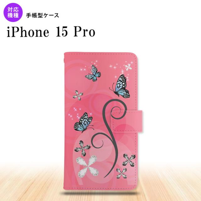 iPhone15 Pro iPhone15 Pro 手帳型スマホケース カバー バタフライ 蝶 ピンク 2023年 9月発売 nk-004s-i15p-dr225