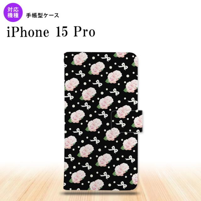 iPhone15 Pro iPhone15 Pro 手帳型スマホケース カバー 花柄 バラ リボン 黒 2023年 9月発売 nk-004s-i15p-dr257