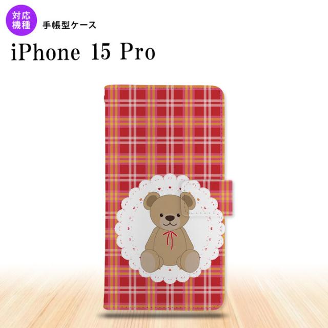 iPhone15 Pro iPhone15 Pro 手帳型スマホケース カバー くま チェック レース 赤 2023年 9月発売 nk-004s-i15p-dr755