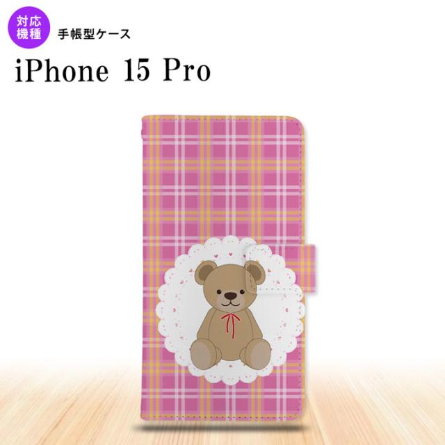 iPhone15 Pro iPhone15 Pro 手帳型スマホケース カバー くま チェック レース ピンク 2023年 9月発売 nk-004s-i15p-dr756