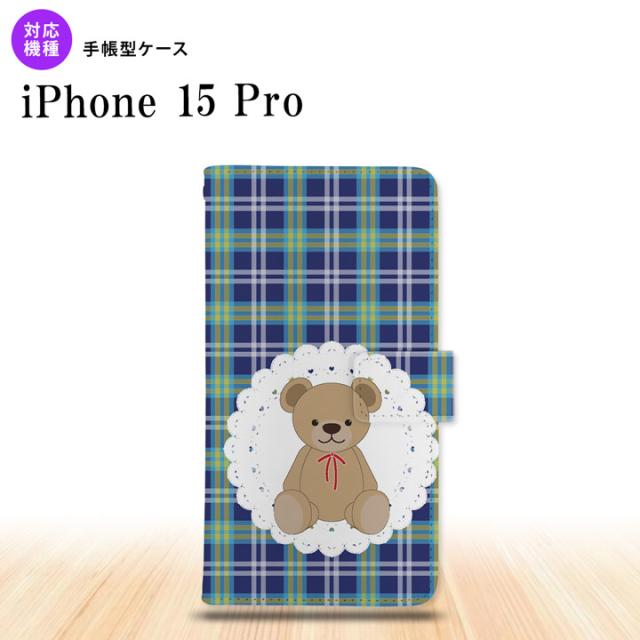 iPhone15 Pro iPhone15 Pro 手帳型スマホケース カバー くま チェック レース 青 2023年 9月発売 nk-004s-i15p-dr758