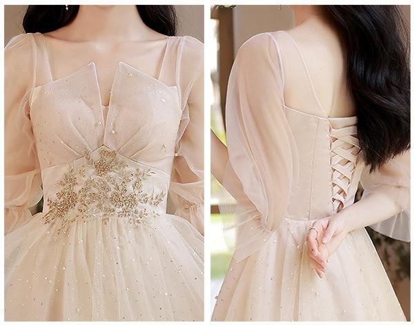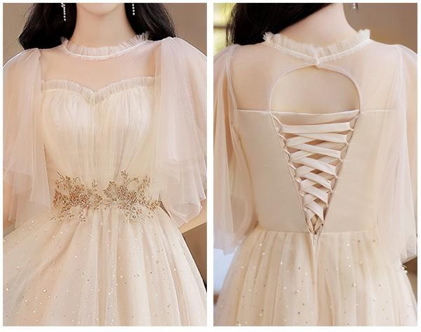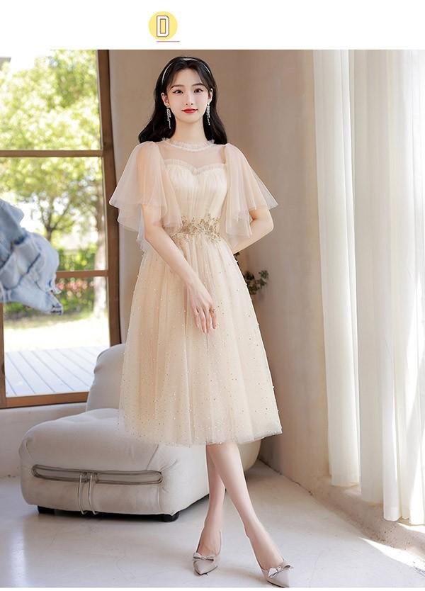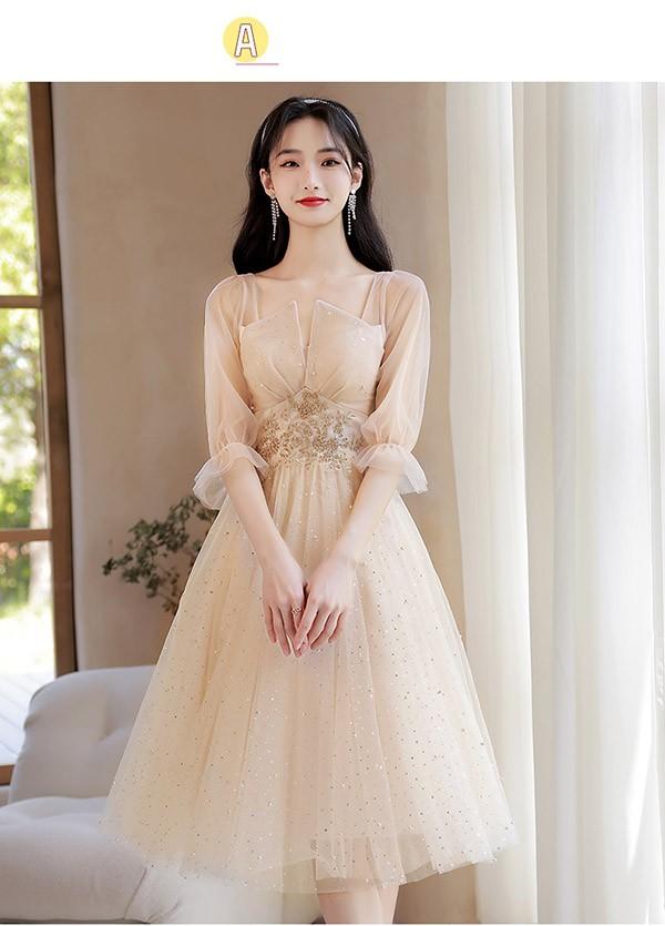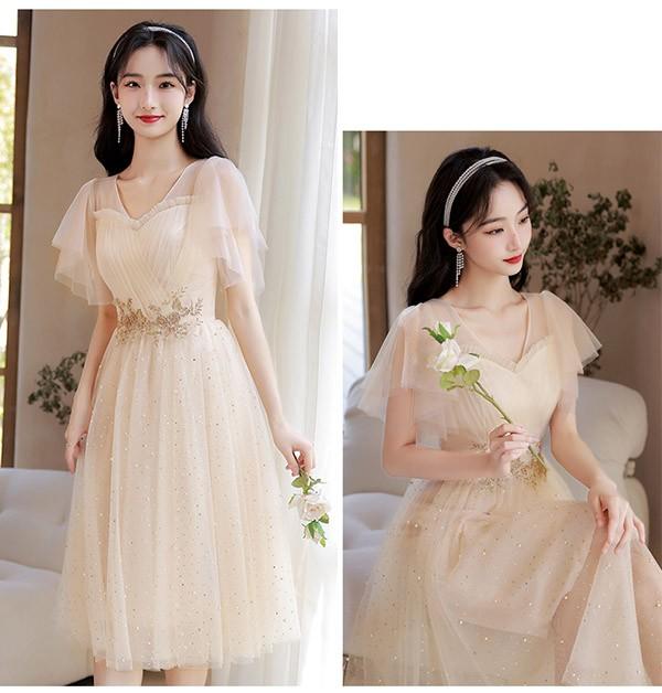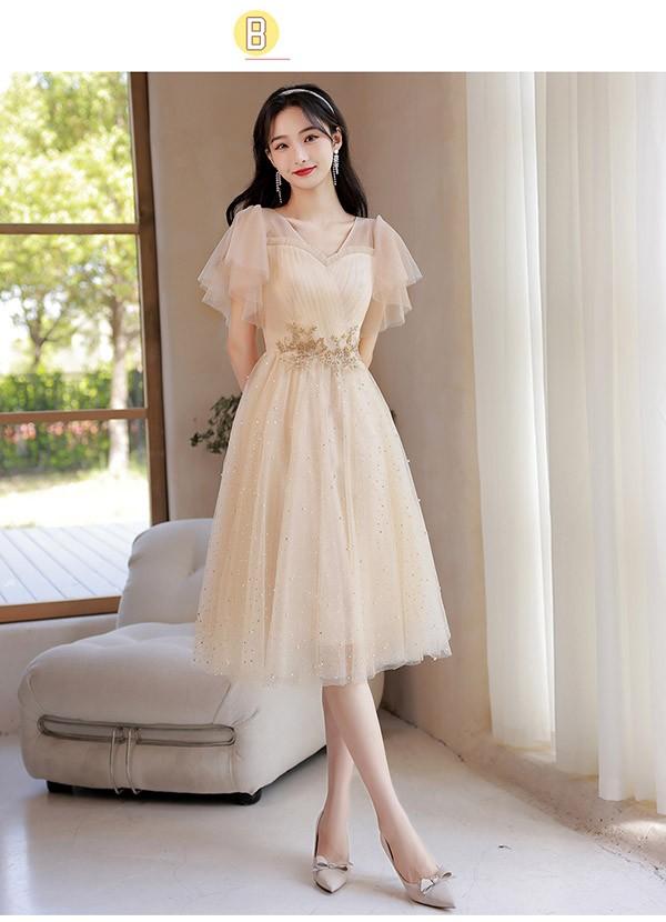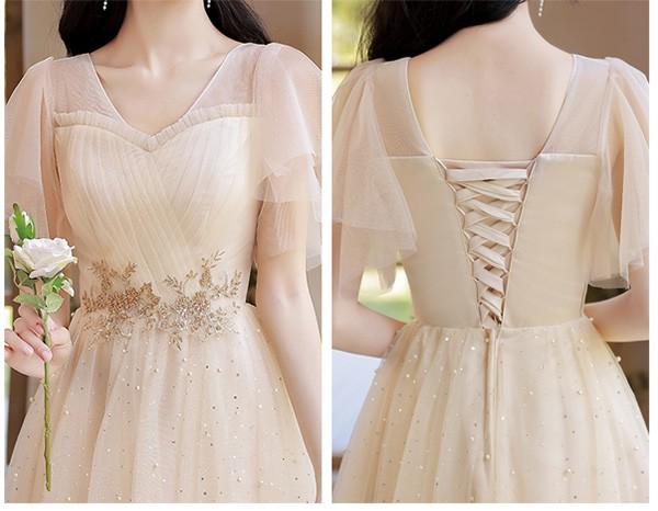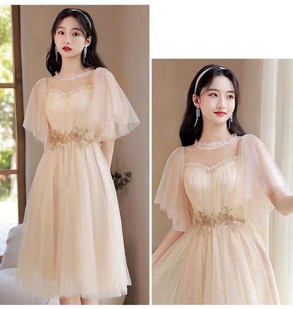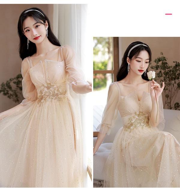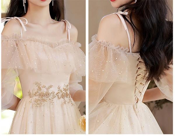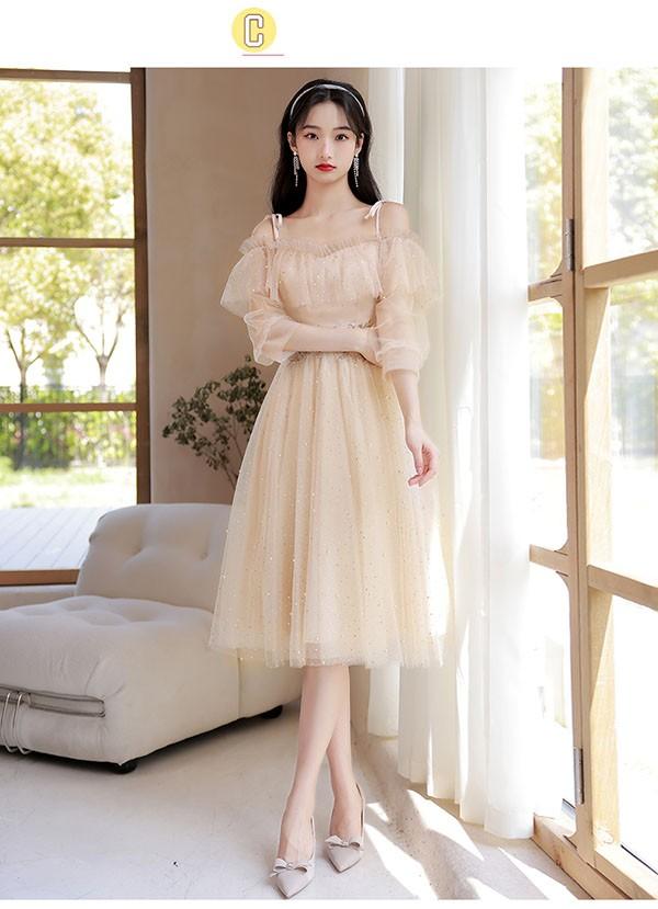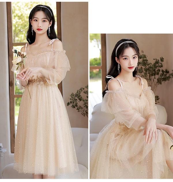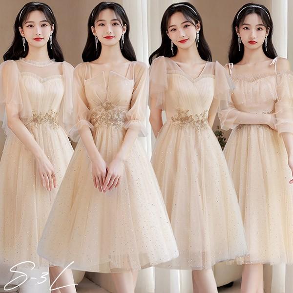 ブライズメイド ドレス ミモレ丈 シャンパン 袖付き 二次会 大きいサイズ 結婚式 体型カバー 半袖 フリル オフショルダー 謝恩会 二次会 卒業式 花嫁 ピアノ 発表会 ドレス 演奏会 20代 bi290zezel9