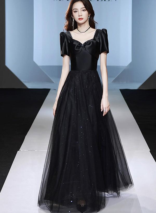 ドレス 大人 ピアノ 発表会 ロングドレス キラキラ 演奏会 結婚式 母親 ドレス ピアノ発表会 黒 袖付き ワンピース 半袖 演奏会ドレス 演奏会用ドレス パーティードレス イブニングドレス ロング丈 大きいサイズ 小さいサイズdb290s1s1l9