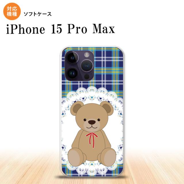 iPhone15 Pro Max iPhone15 Pro Max スマホケース 背面ケースソフトケース くま チェック レース 青 2023年 9月発売 nk-i15pm-tp758