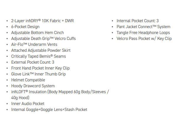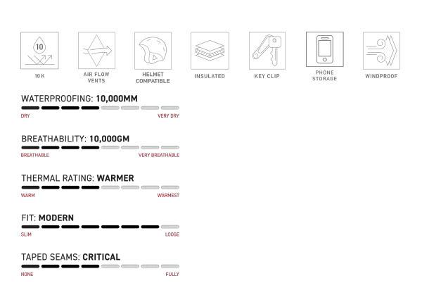 | | 10,000mm:WATERPROOF 10,000gm:BREATHABLE x DWR |