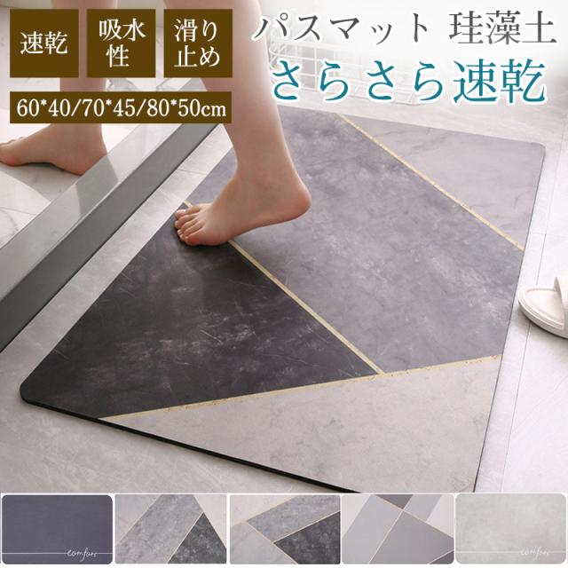 パスマット 珪藻土 ソフト 柔らかい 大判 速乾 吸水 足拭き 浴室 お風呂 洗面所 バスルーム シンプル 滑り止め おしゃれ 新生活 水切り 可愛い 母の日 父の日 敬老の日 プレゼント 室内 トイレ 薄い 抗菌 一人暮らし