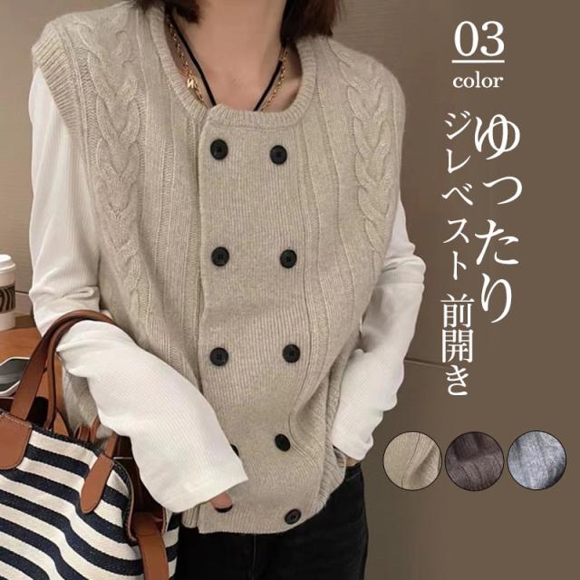 ベスト レディース ジレベスト 前開き ジレ ニットベスト 前開きベスト トップス ノースリーブ カジュアル おしゃれ ゆったり