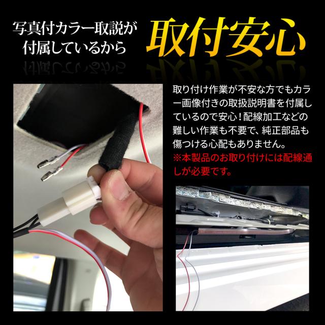 ■両面テープを剥がした場合はいかなる理由でも返品交換対応はできません。装着前に必ず状態の確認・点灯確認を行ってから貼り付けるようにしてください。 ■本品はルームランプのドアスイッチに連動してLEDが点灯します。 ■走行中にLEDは点灯しません。 |