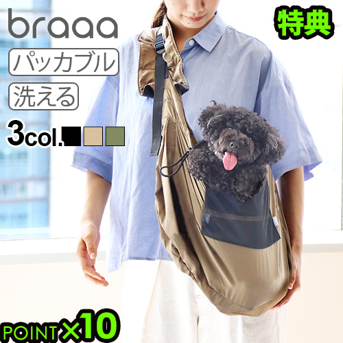 【特典付】犬 スリング 抱っこ紐 ドッグスリング ブラー パッカブルスリング braaa petseries pet 超小型犬 小型犬 中型犬 肩ひも調整 ナイロン 軽量 斜め掛け 手ぶら コンパクト 旅行 散歩 おしゃれ お出かけ【12時迄のご注文は当日発送★送料無料】
