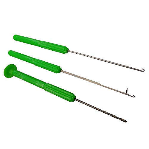 釣りニードル ボイリー 鯉釣り タイラバ仕掛け自作 クイック アシストニードル ドリル針 フック外し ライン通し3点セット 柄付 グリーン