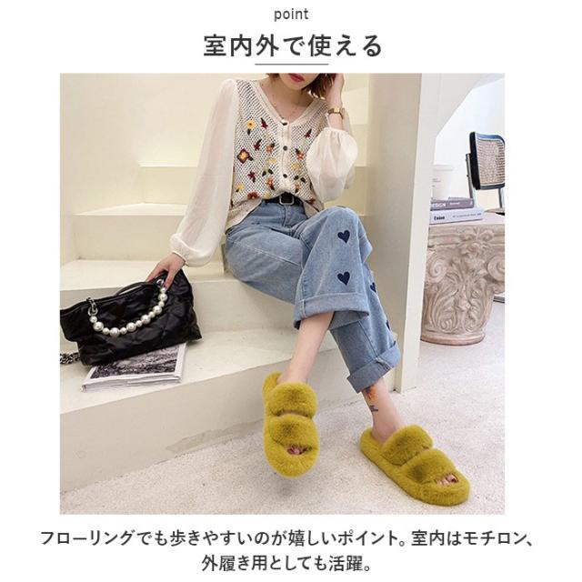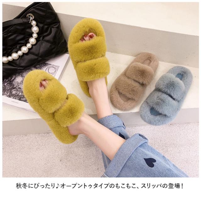 もこもこ スリッパ 通販 ルームシューズ ルームスリッパ ルームサンダル 前開きスリッパ 秋 冬用 室内履き オープントゥ ボア フェイクファー 暖かい あったかい かわいい ふわふわ
