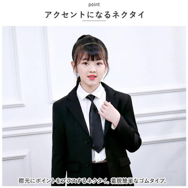 | 商品説明 | ・色んなシーンで大活躍!スタイリッシュにキマる、女の子用スーツ4点セットが登場。 【うれしい4点セット】 ・ジャケット、ロングパンツ、長袖シャツ、ネクタイの4点セット。あっという間にコーデが完成。 【シンプルなブラックカラー】 ・サラッと軽い薄手の生地を使ったブラックカラー。入学・卒業式、発表会などで、かっこよく大人顔負けの雰囲気を演出。 【シングルジャケット】 ・フロントボタンが1列に並んだ、スタンダードデザイン。サッと羽織りやすく、左右にはポケット付き。(※胸ポケットはフェイクです。) 【ストレスなく履けるロングパンツ】 ・締めつけ感の少ないウエストゴム仕様。着替えがしやすく、自分サイズにフィット!左右にポケット付き。 【ベーシックな長袖シャツ】 ・フロントボタン付きの、スタンダードなカタチに仕立てたシャツ。単体使いもしやすいホワイトカラー。左胸元にポケットを配置。 【アクセントになるネクタイ】 ・襟元にポイントをプラスするネクタイ。着脱簡単なゴムタイプ。 【選べる4サイズ】 ・成長に合わせて選べるサイズ展開。姉妹お揃いもできちゃう! |