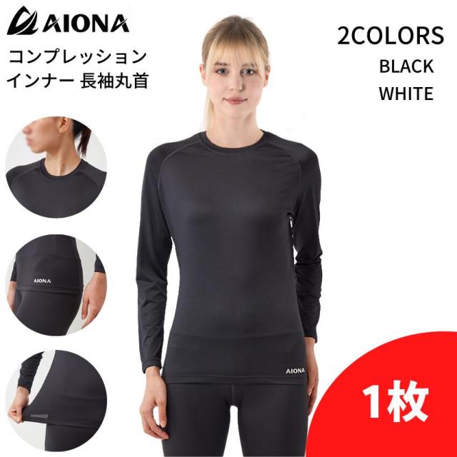 【送料無料】AIONA レディース 長袖 丸首 コンプレッション インナー 2色 吸水速乾 抗菌防臭 コンプレッションウェア アンダーシャツ インナーウェア オールシーズン スポーツ ゴルフ ジム フィットネス ヨガ ギフト ネコポス ポイント消化