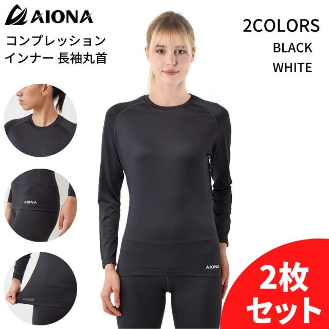 2枚セット 送料無料 AIONA レディース 長袖 丸首 コンプレッション インナー 2色 吸水速乾 抗菌防臭 コンプレッションウェア アンダーシャツ インナーウェア オールシーズン スポーツ ゴルフ ジム フィットネス ヨガ ギフト ポイント消化 ネコポス