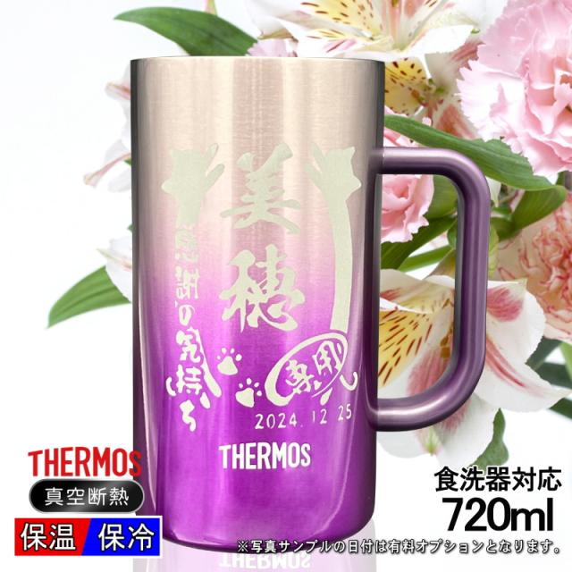 名入れ ビールジョッキ サーモス 名前入り プレゼント 食洗器対応 真空断熱 保温 保冷 ステンレス 彫刻 刻印 グラス コップ ビアグラス おしゃれ ビールグラス 父の日 ジョッキ 還暦祝い 誕生日 男性 女性 720 ml 青 紫 JDK-721C 単品 ビアジョッキ 背景/イラスト入り CI29