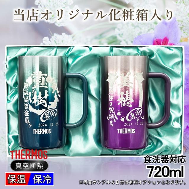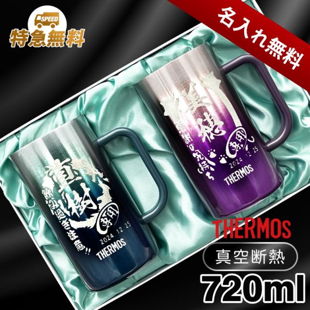 【化粧箱入り】 名入れ ビールジョッキ サーモス ペア 名前入り プレゼント 食洗器対応 真空断熱 保温 保冷 ステンレス 彫刻 刻印 グラス コップ ビアグラス おしゃれ ビールグラス ジョッキ 誕生日 720 ml 青 紫 JDK-721C ビアジョッキ セット 背景/イラスト入り CI32