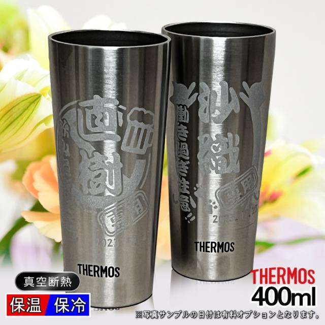タンブラー サーモス ペア 名入れ プレゼント 真空断熱 保温 保冷 ステンレス 名前入り 彫刻 刻印 グラス コップ 父の日 母の日 還暦祝い 退職 誕生日 送別会 敬老の日 実用的 ネーム 男性 女性 バースデー ギフト 400 ml JDI-400P 背景/イラスト入り CI13