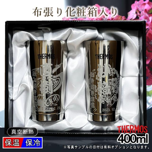 【化粧箱入り】 名入れ タンブラー サーモス ペア 名前入り プレゼント 真空断熱 保温 保冷 ステンレス 彫刻 刻印 グラス コップ おしゃれ ビールグラス 父の日 母の日 還暦祝い 誕生日 実用的 男性 女性 バースデー ギフト 400ml 光沢 JMO-GP2 SL 背景/イラスト入り CI14