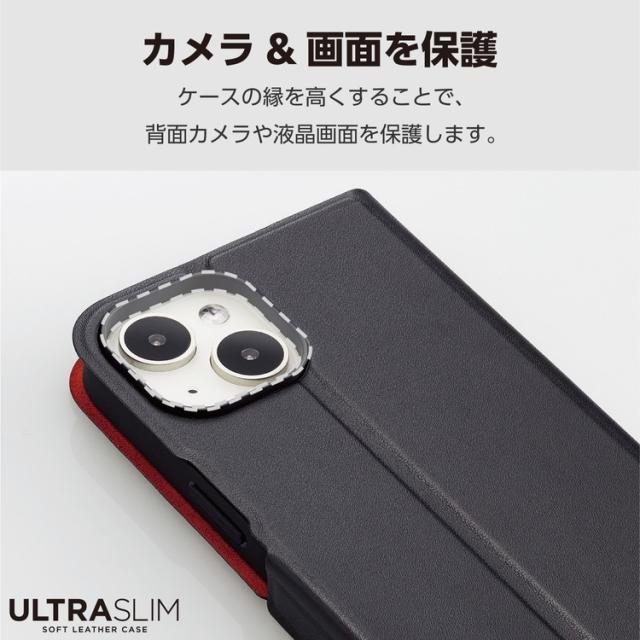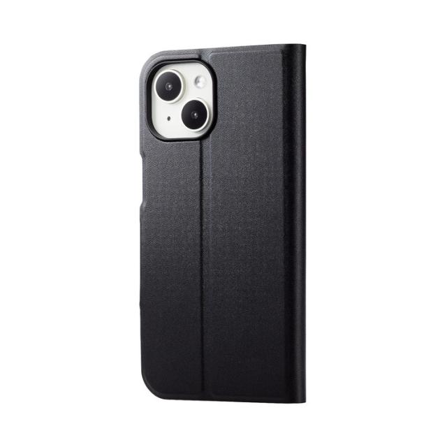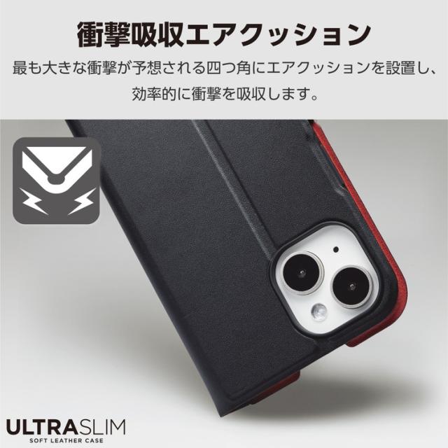 エレコム ELECOM iPhone 15 用 ケース レザー カバー 手帳型 マグネット フラップ 衝撃吸収 超軽量 薄型 スタンド機能付 カードケース機能付 UltraSlim ブラック PM-A23APLFUBK(代引不可)【メール便配送】【送料無料】