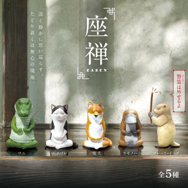 【全5種類セット】ガチャ ガチャガチャ コンプリート 中身 動物 猫 ネコ 犬 いぬ かわいい フィギュア おもちゃ [ 座禅 ]
