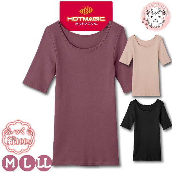 グンゼ ホットマジック ふっくら綿100% 5分袖 吸湿発熱 裏起毛 綿100% M/L/LL | 脇縫いなし 秋冬 無地 レディース 綿 インナー 肌着 下着 MH4648N GUNZE HOTMAGIC