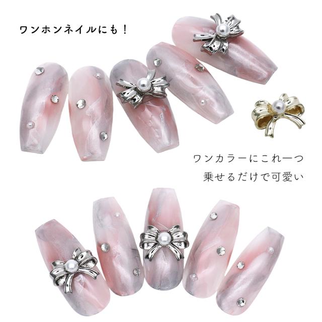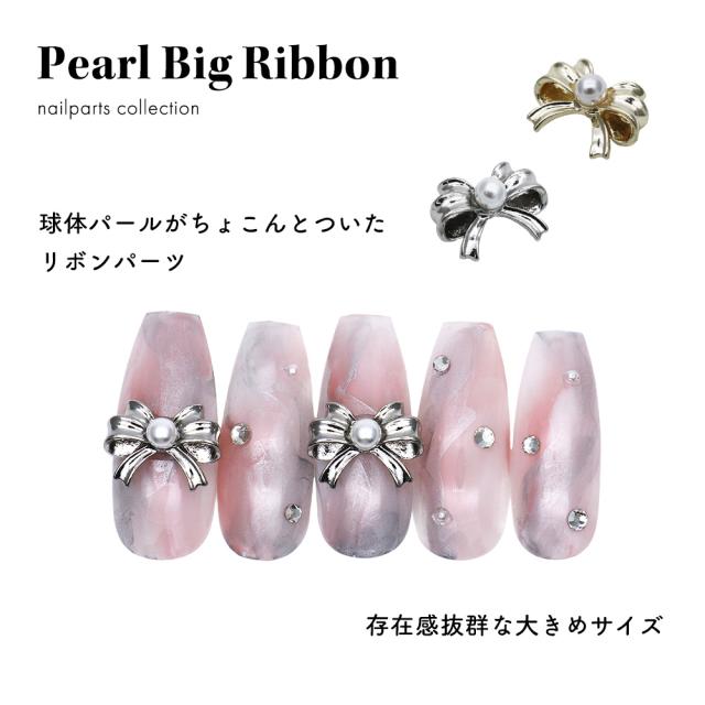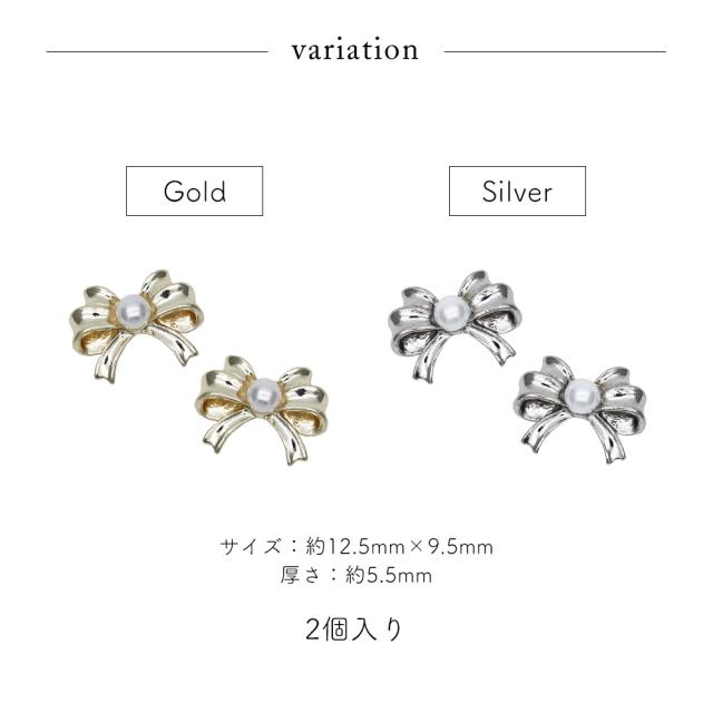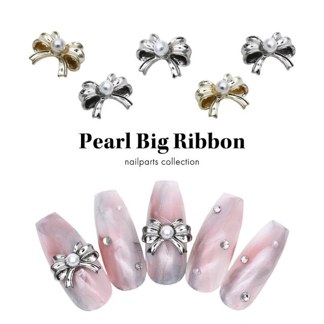 ネイルパーツ パール付きビッグリボンパーツ [ゴールド/シルバー] 全2色 2個入り