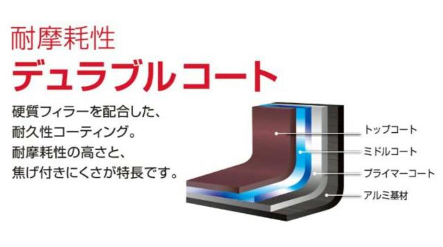 ●耐摩耗性デュラブルコートを採用し、耐久性が高く焦げつきにくいのが特徴です。