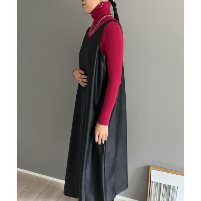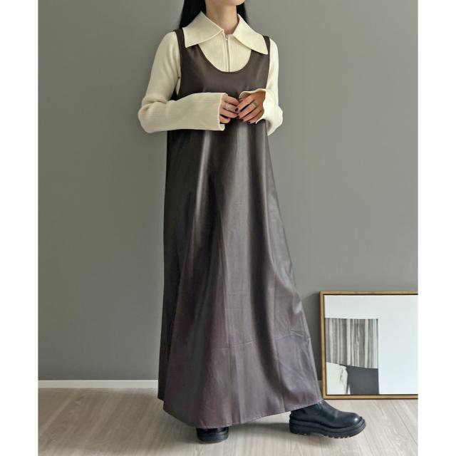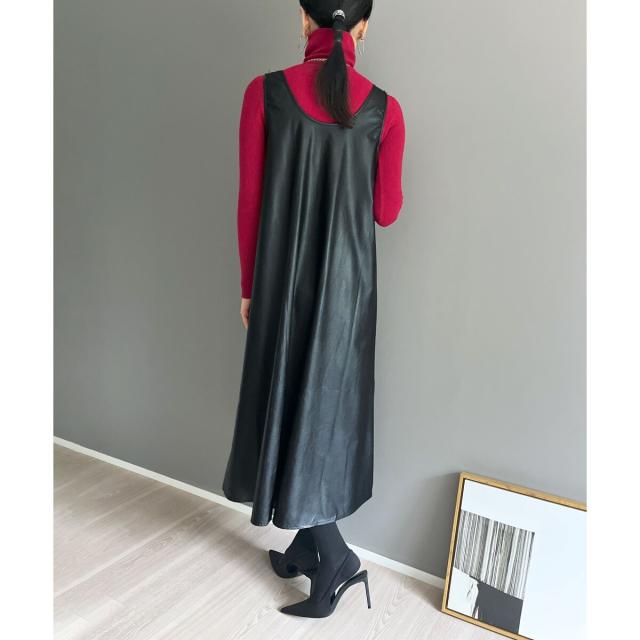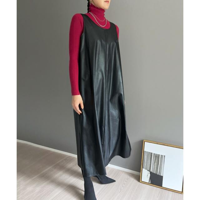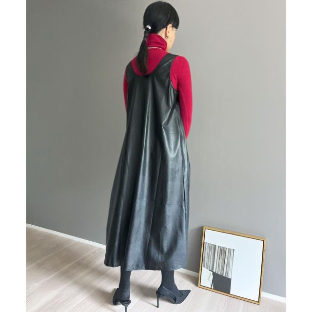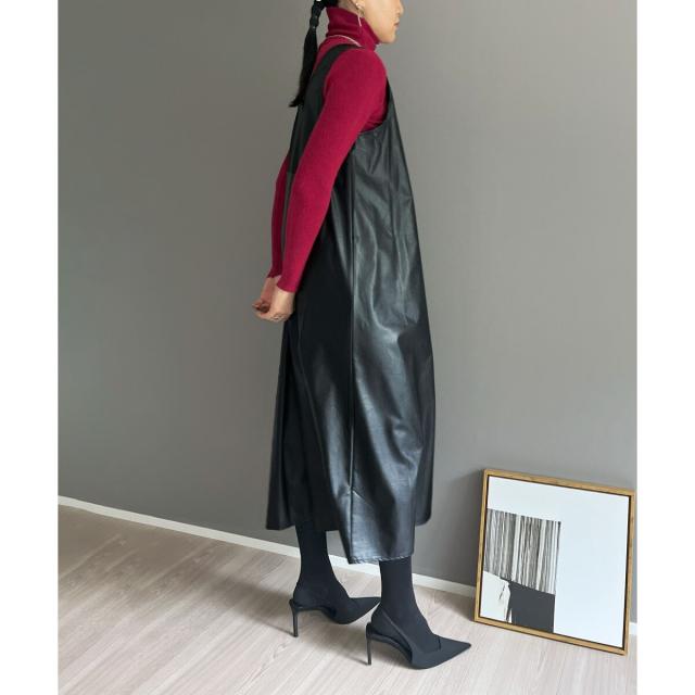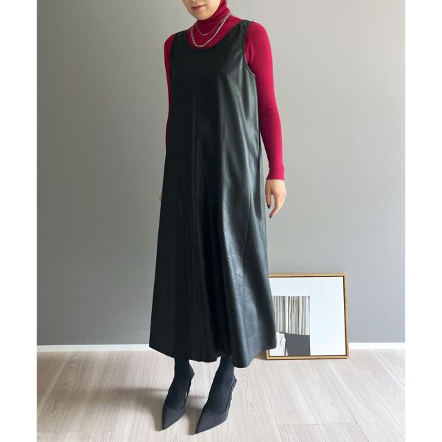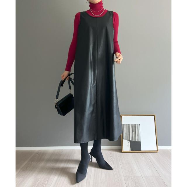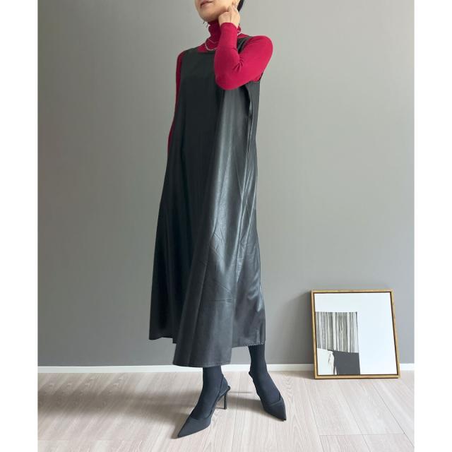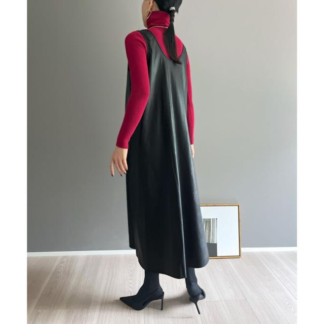 ニットと相性のいい合皮素材で秋冬のレイヤードコーデにぴったりなアイテムです。