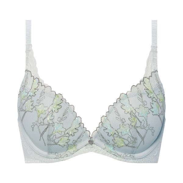 マーブリングを思わせるような、繊細な編みレースを胸元とカップ下にあしらい、軽い編みレースが抜け感を演出。