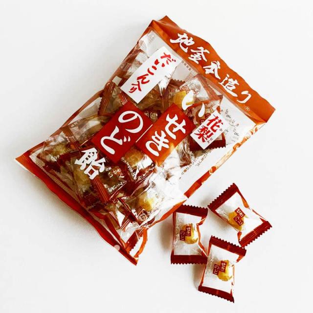 かりんエキスと生のだいこんから搾っただいこんエキス、 ハーブエキスを加えたのど飴です。