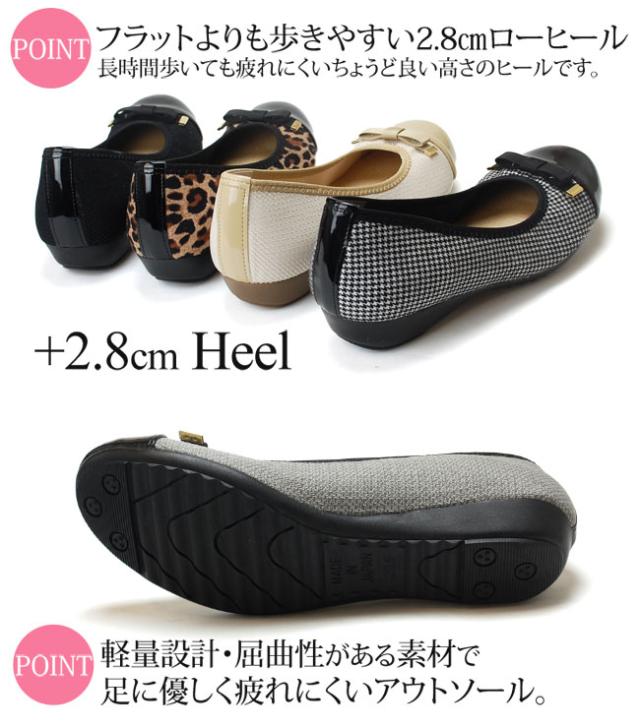 フラットよりも歩きやすい2.8cmローヒール。