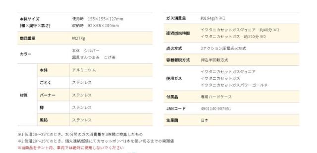 | 商品名 | カセットガス ジュニアコンパクト バーナー |