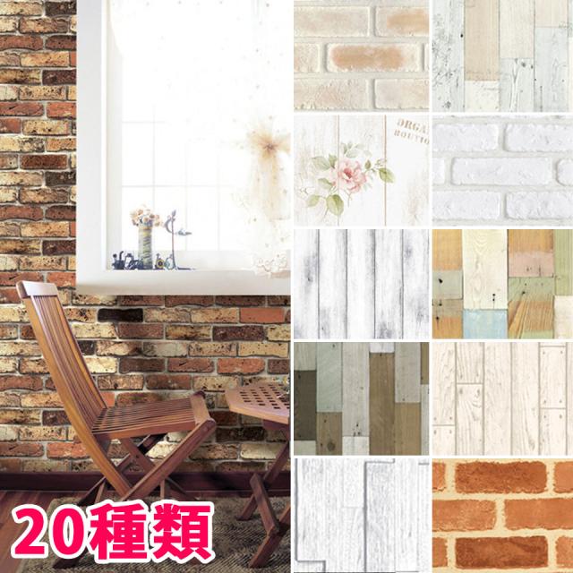 壁紙 レンガ はがせる シール のり付き 壁用 木目 クロス 木目調 全20種 1m単位 木目柄 リメイクシート ウォールステッカー アクセントクロス カッティングシート ウォールシート 輸入壁紙 リフォーム アンティークレンガ 宅B