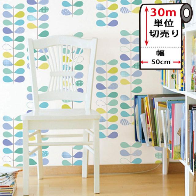 はがせる壁紙シール『カラフルドロップリーフ30m』のり付き壁紙シール:dps-089set30