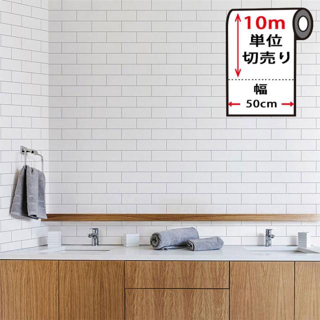 壁紙 白 【 サブウェイタイル柄の貼ってはがせる壁紙シール 】 【 お得な壁紙10mセット 】のり付き 壁用 リメイクシート 北欧 おしゃれ かわいい アクセントクロス サブウェイタイル DIY リフォーム 輸入壁紙 シンプル ホワイトレンガ 宅B
