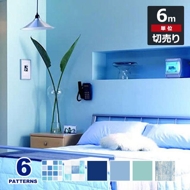 壁紙 シール 【 青・ブルーの壁紙シール 】【 お得な壁紙6mセット 】 壁紙 タイル はがせる シール のり付き 壁用 クロス リメイクシート ウォールステッカー アクセントクロス カッティングシート ウォールシート 輸入壁紙 リフォーム 宅B