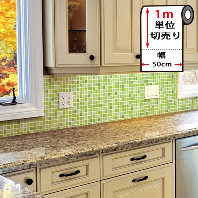 壁紙 シール タイル 【 モザイクタイル柄の貼ってはがせる壁紙シール 】幅50cm×1m単位 モザイクタイル シート モザイクタイルシール のり付き 壁用 リメイクシート ウォールステッカー アクセントクロス カッティングシート 宅B